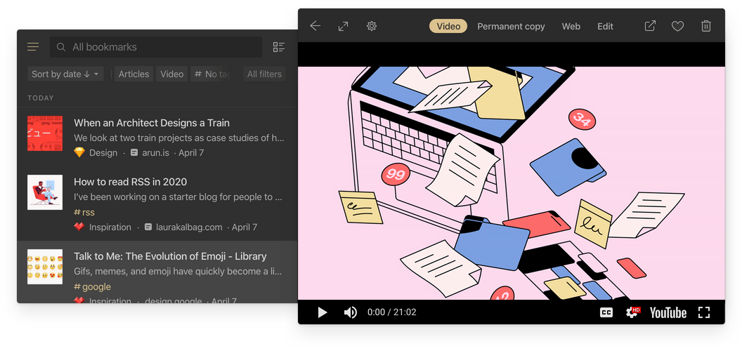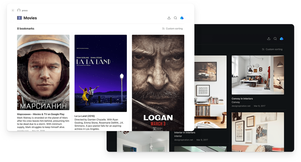 View bookmarks the way you like. We have Grid, Headlines, Masonry, or List view modes. Learn more