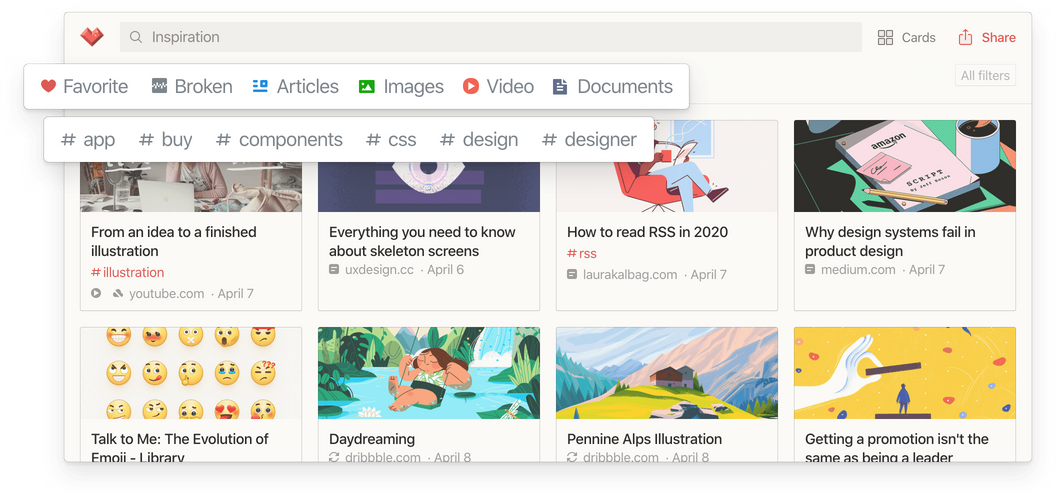 Raindrop.io is not just a pretty interface, it can help you untangle your bookmarks mess.