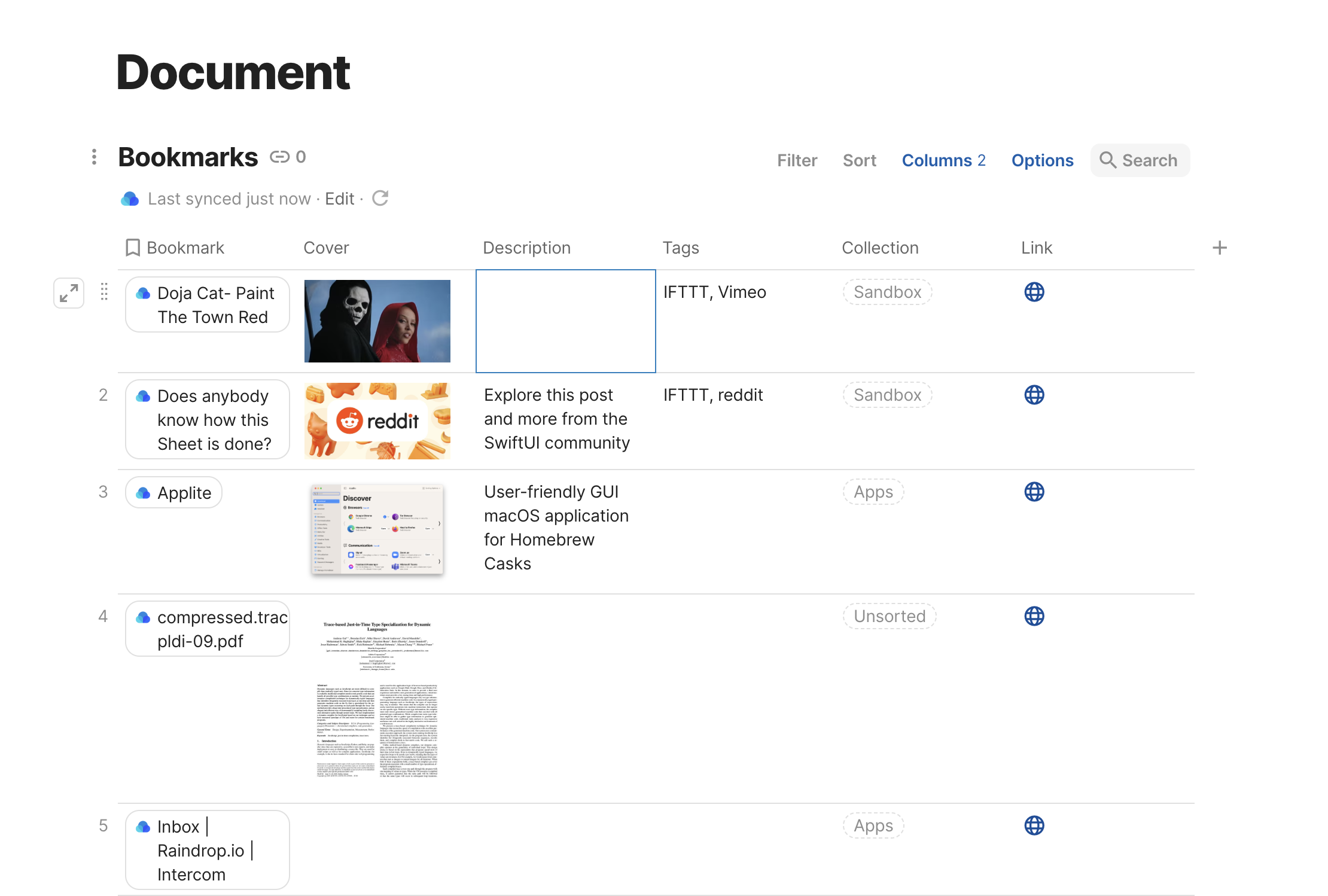 Embed Raindrop.io bookmarks & collections in your Coda documents